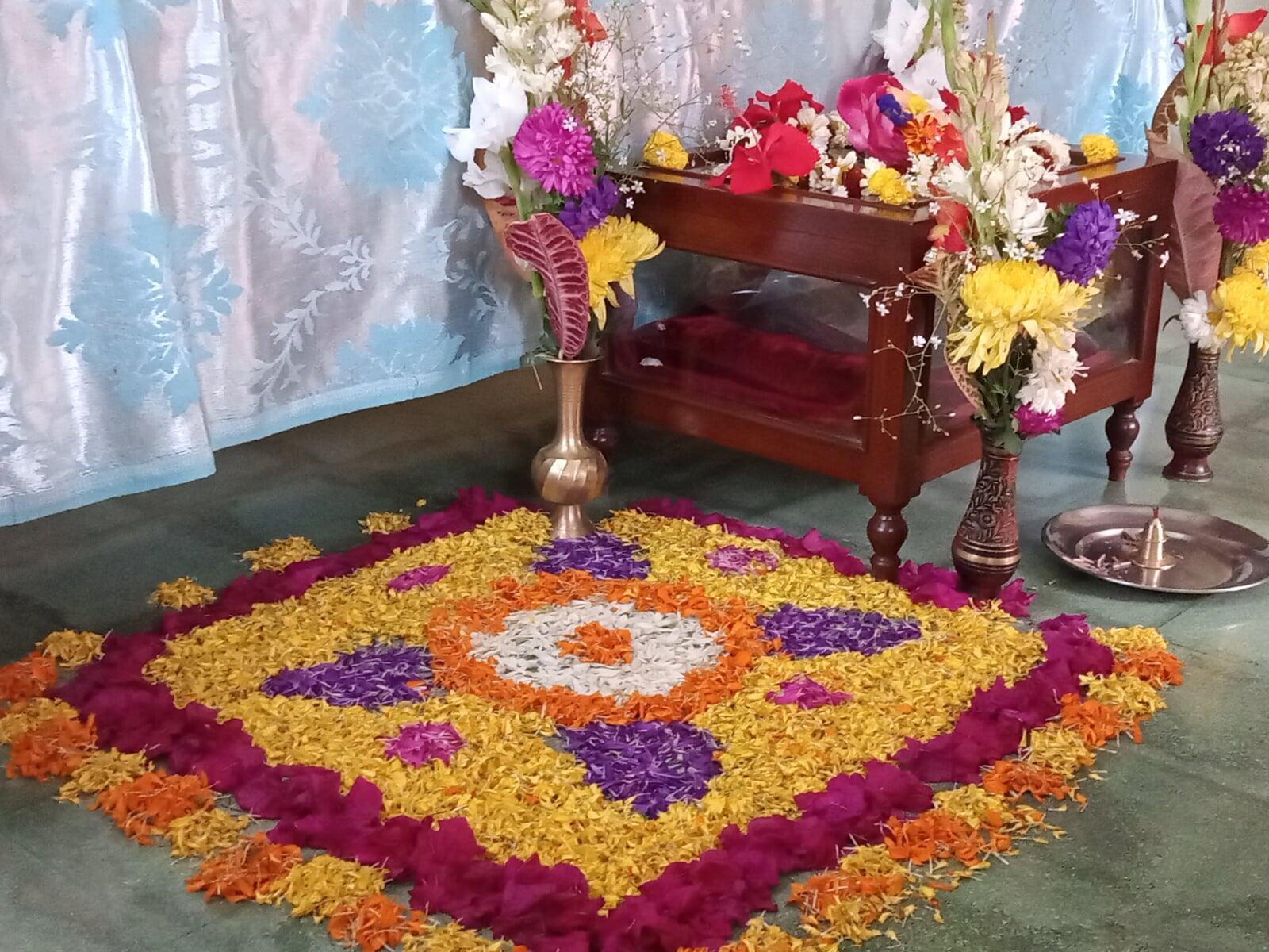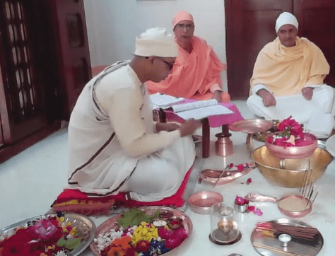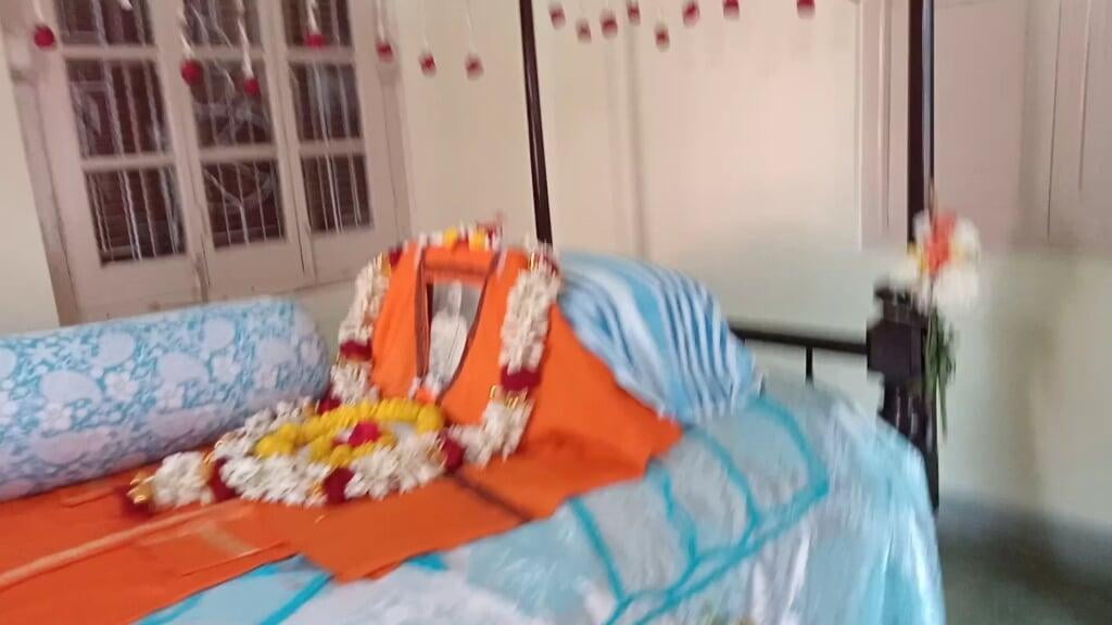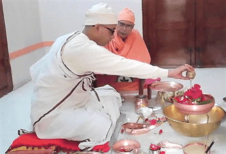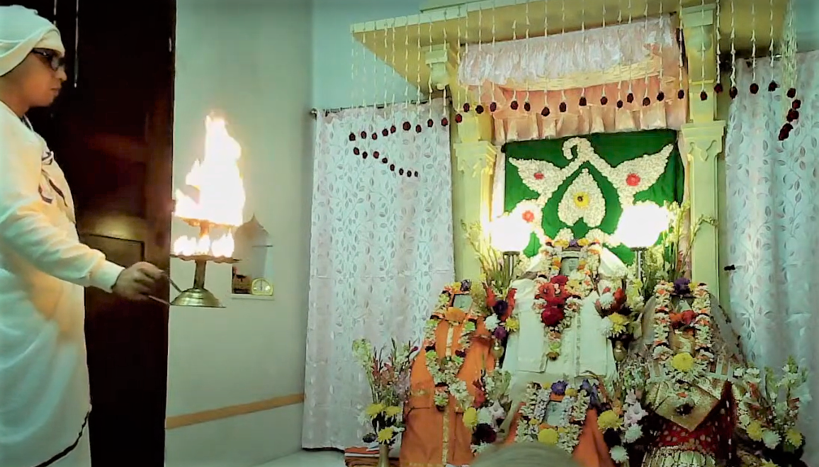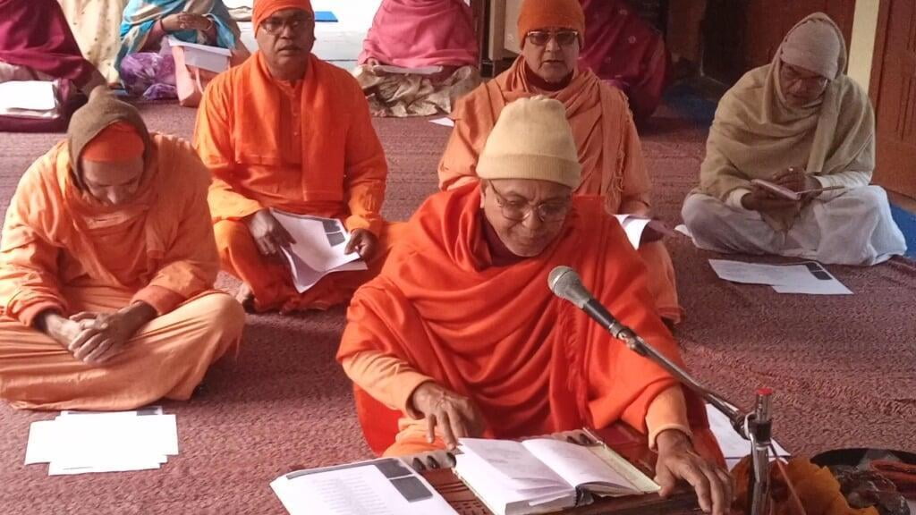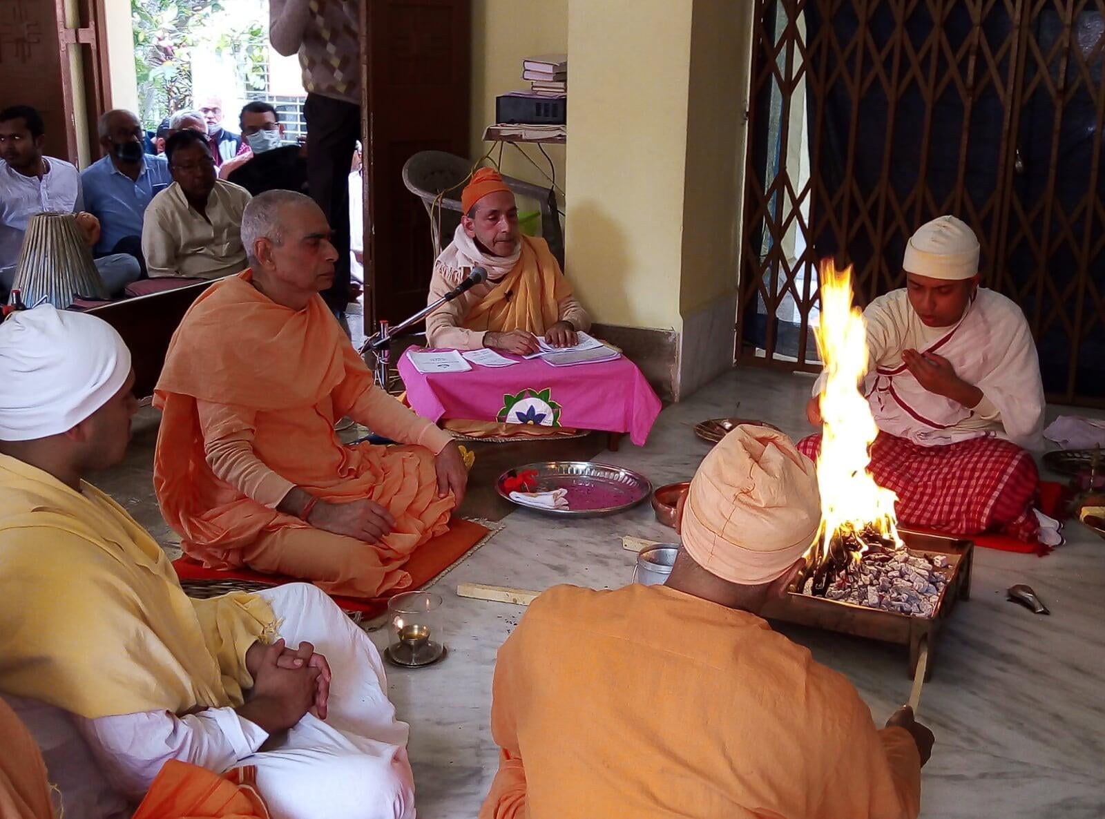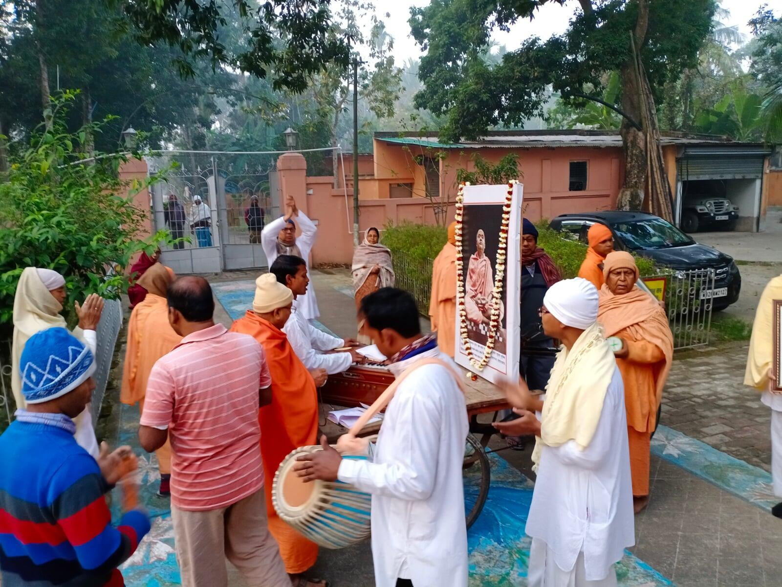 159th birthday celebration of Swami Brahmannadaji maharaj observed with due solemnity on Saturday, 13 Feb. 2021. Programme started with the Mangal Arati of Shri Thakur followed by Temple Pradakshina and Samkirtana, Vedic Chanting, Stotras. Special puja of Shri Thakur and Shri Raja Maharaj was performed in the Shrine. A limited devotees took prasad. An online discourse on Raja Maharaj was delivered by Swami Lokottarananda, Adhyaksha, Ramakrishna Math Kamarpukur. The whole day program ended with Sandhya Aratirikam and Bhajan.