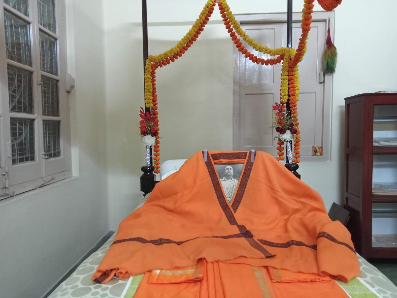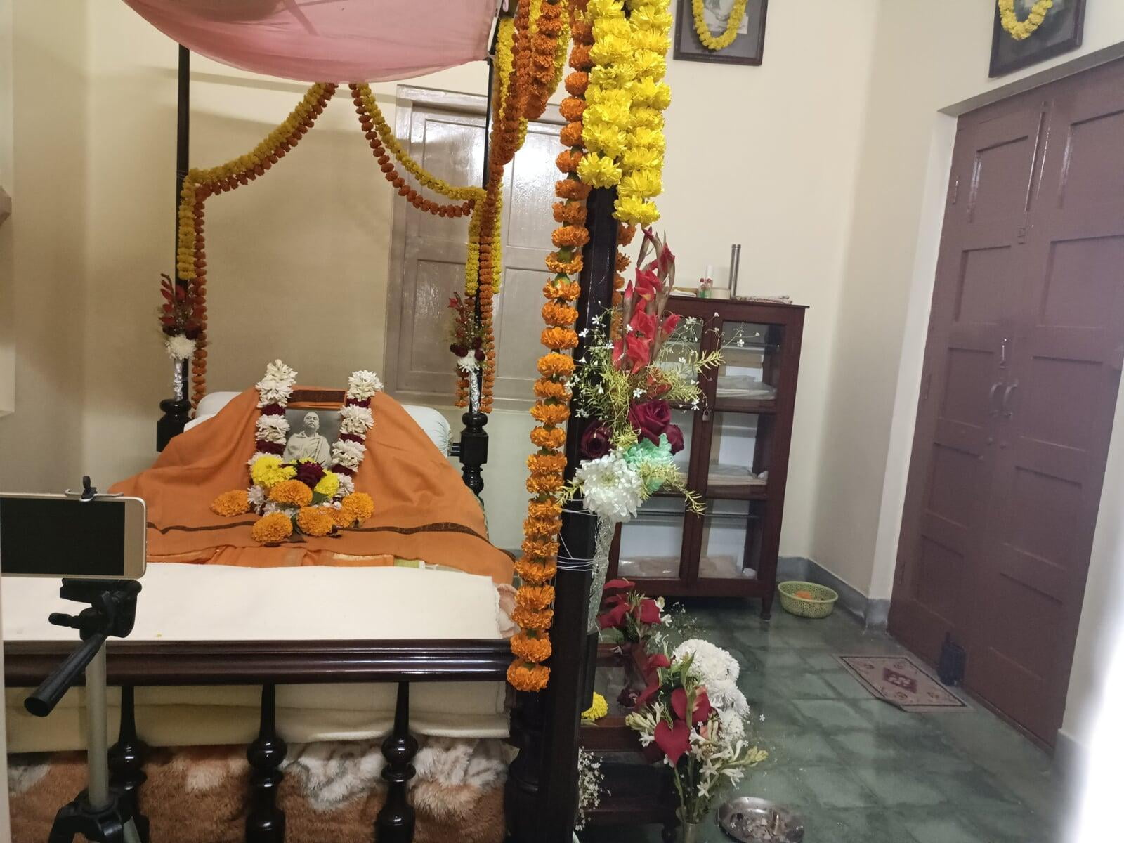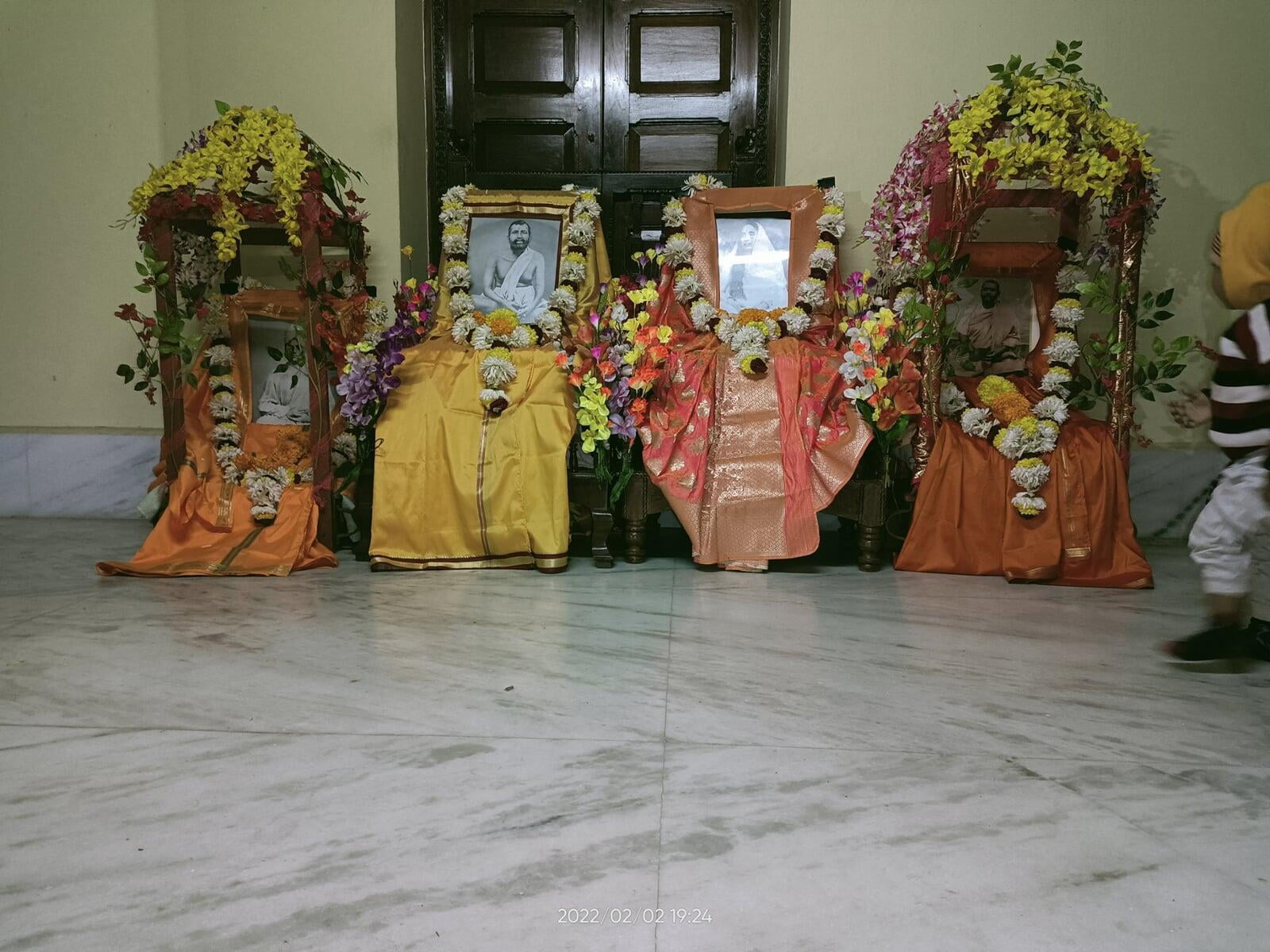 Thakur, Maa, Swamiji and Raja Maharaj in Shrine on the Auspicious Birthday of Raja Maharaj in Sikra Kulingram