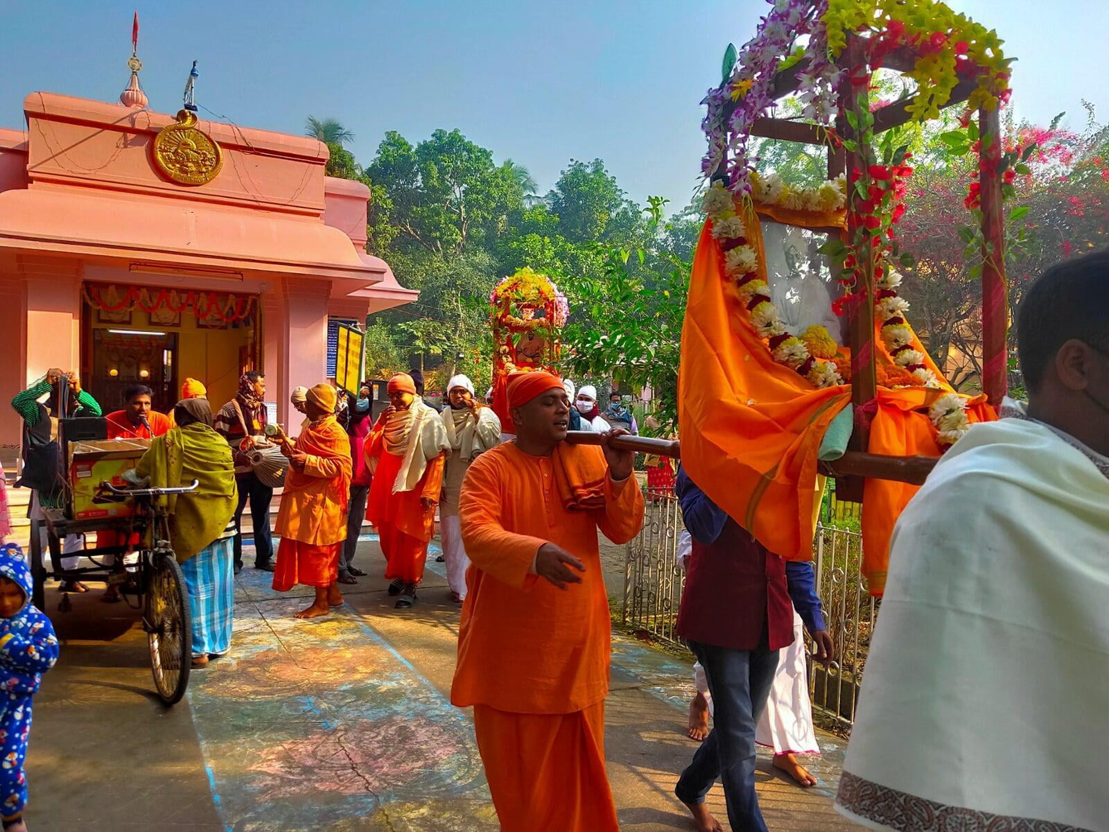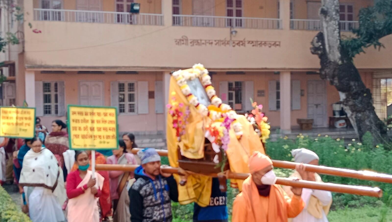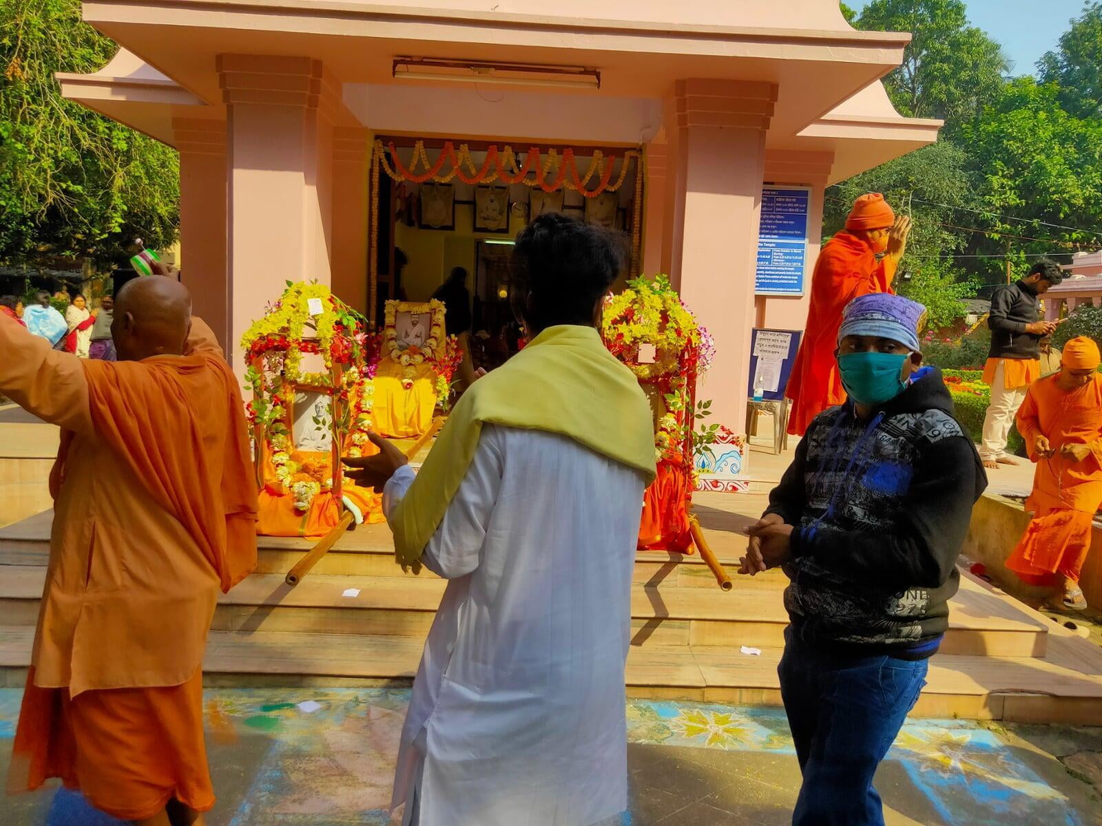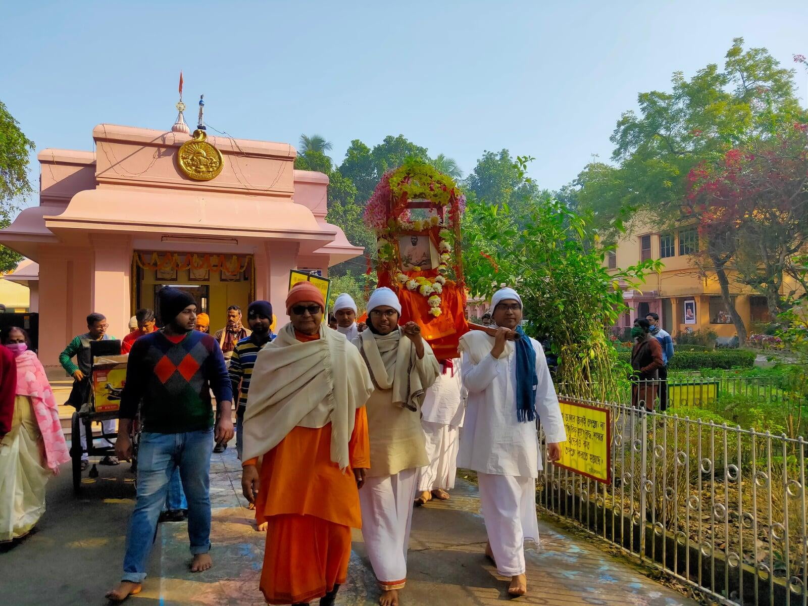 The auspicious 160th birthday celebration of Swami Brahmannadaji maharaj observed in Ramakrishna Math and Ramakrishna Mission Sikra Kulingram with due solemnity on Wednesday, 2 Feb. 2022. Programme satarted with the Mangal Arati of Shri Thakur followed by Vedic Chanting and Stotras, Divyajiban Kathan of Raja Maharaj, Temple Pradakshina and Samkirtana, Special puja of Shri Thakur and Shri Raja Maharaj were performed in the Shrine. Limited devotees took prasad. The whole day program ended with Sandhya Aratirikam and Ramnama Samkirtana.