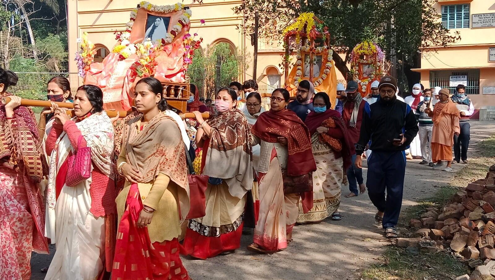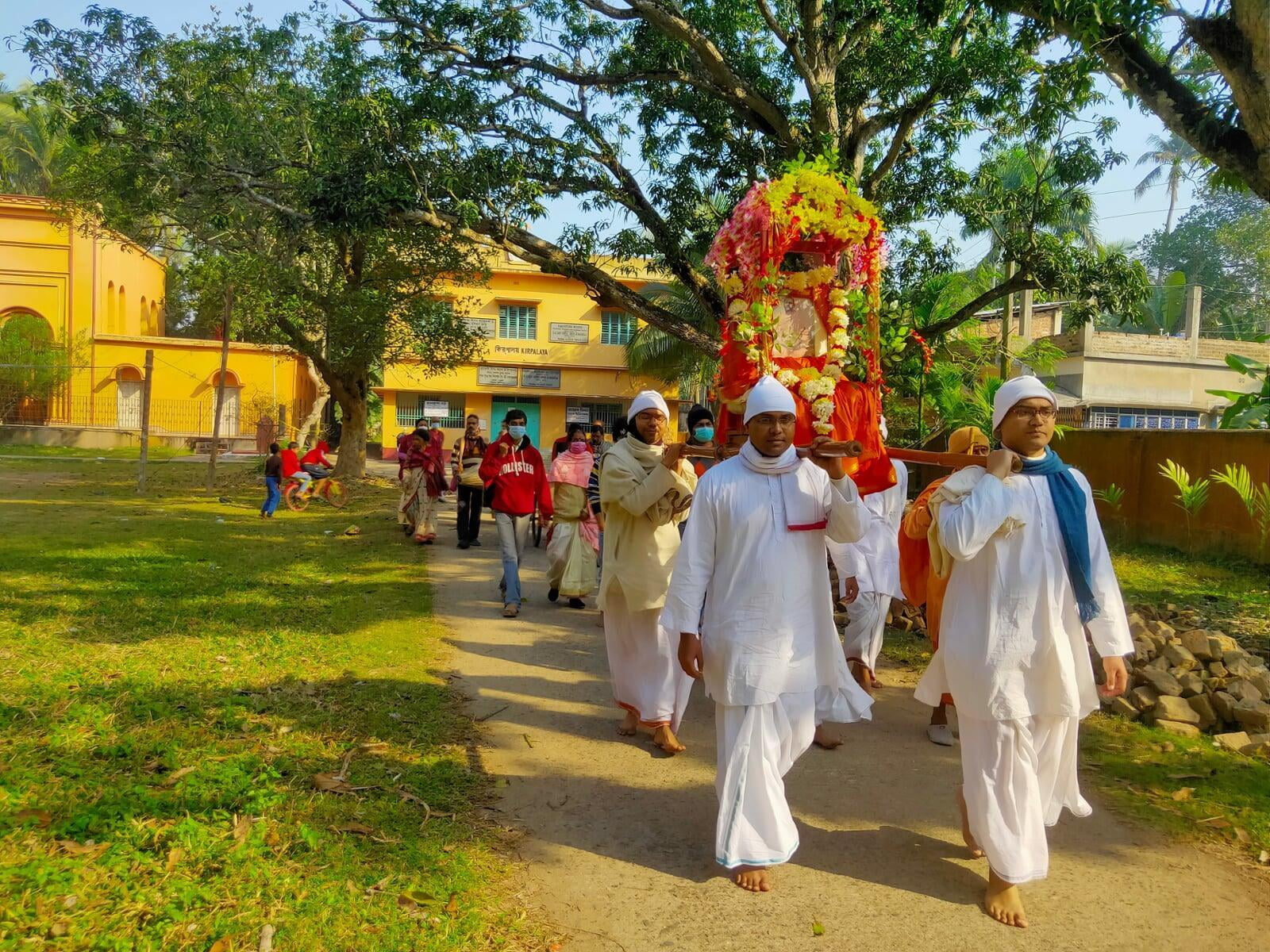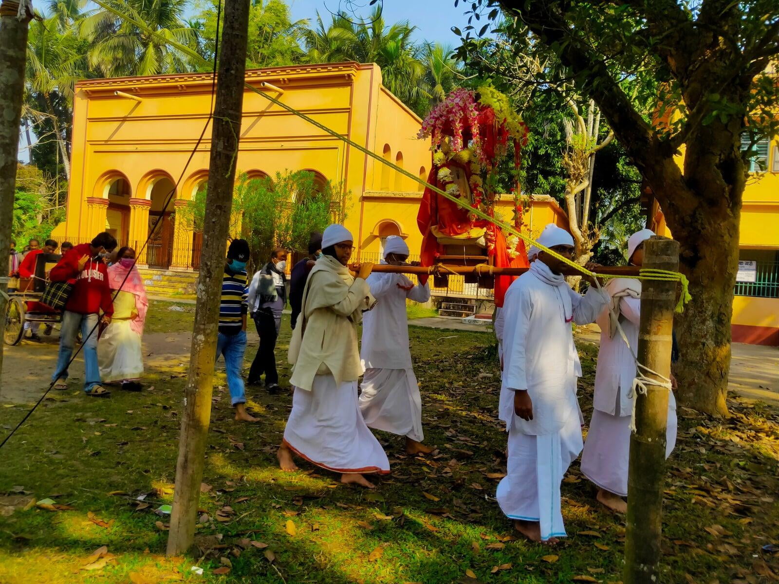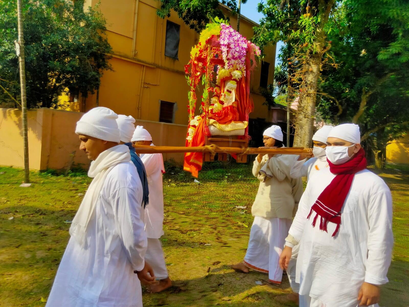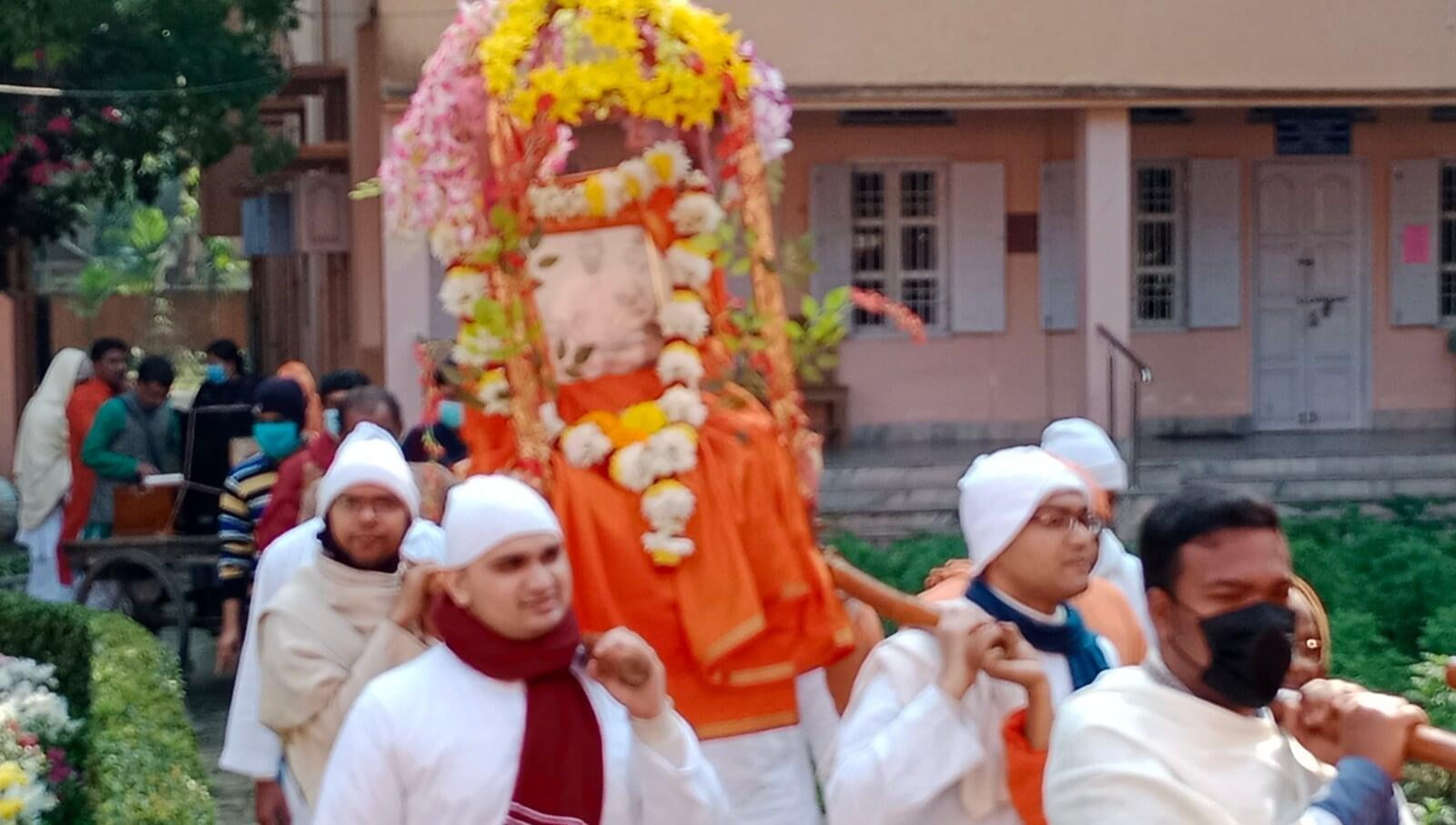The auspicious 160th birthday celebration of Swami Brahmannadaji maharaj observed in Ramakrishna Math and Ramakrishna Mission Sikra Kulingram with due solemnity on Wednesday, 2 Feb. 2022. Programme satarted with the Mangal Arati of Shri Thakur followed by Vedic Chanting and Stotras, Divyajiban Kathan of Raja Maharaj, Temple Pradakshina and Samkirtana, Special puja of Shri Thakur and Shri Raja Maharaj were performed in the Shrine. Limited devotees took prasad. The whole day program ended with Sandhya Aratirikam and Ramnama Samkirtana.
